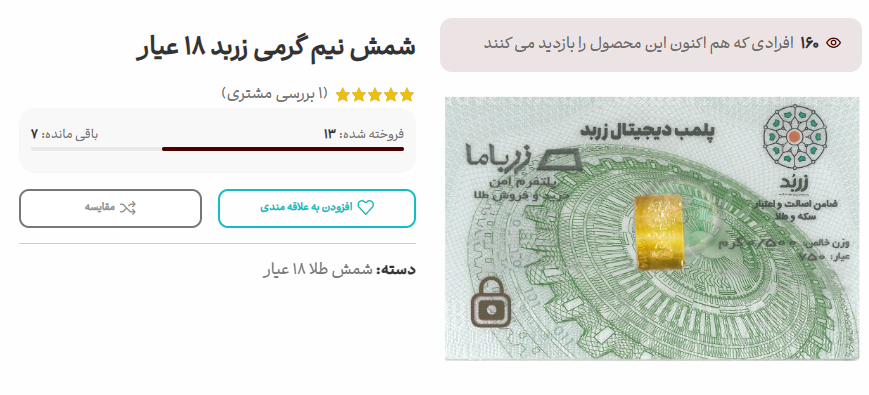 مزایا: مناسب برای هدیه، نقدشوندگی بالا، تنوع در وزن و طرح