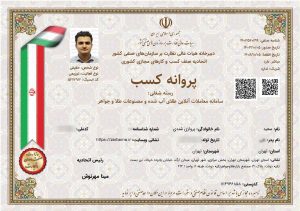 ۲. پروانه کسب اتحادیه صنف فروشندگان و سازندگان طلا، جواهر، نقره، سکه و صراف شهرستان تهران
